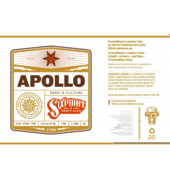 The unmistakable flavor of a Bavarian Wheat, but with a clear golden brilliance and a Sixpoint twist. An entirely unique canned offering for the sun-worshipping ale lovers.